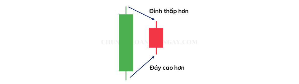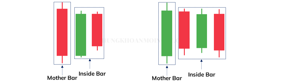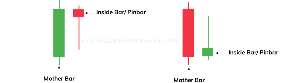 Một Inside Bar bắt buộc phải nằm toàn bộ trong cây nến vừa trước nó, được gọi là nến mẹ – Mother Bar. Nói cách khác, nến Inside Bar phải có đỉnh thấp hơn và đáy cao hơn nến trước.