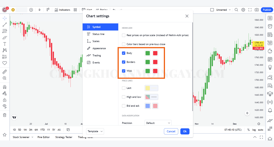 Cài đặt nến Heiken Ashi trên nền tảng Tradingview