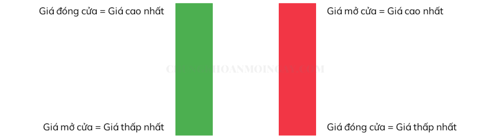 Có thể thấy 2 dạng Marubozu như dưới đây: