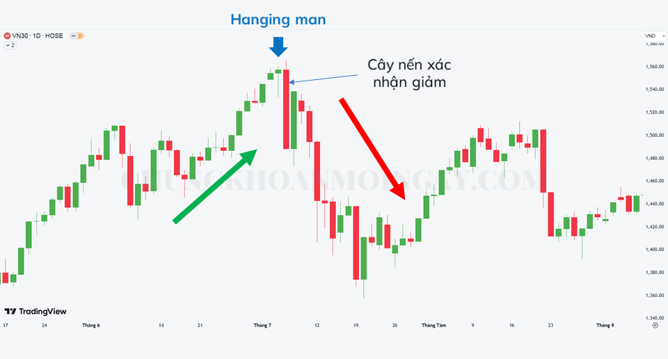 Điều kiện nhận diện nến Người Treo Cổ (Hanging Man):