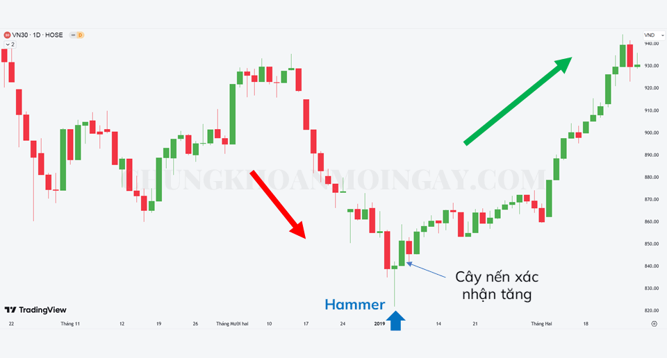 Mô hình Cây Búa (Hammer) là một mô hình đảo chiều tăng, xuất hiện trong một xu hướng giảm.
