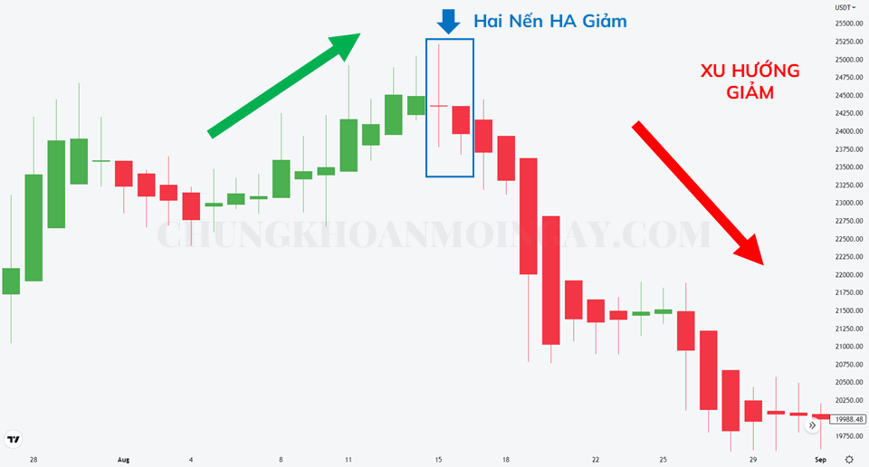 Là mô hình gồm 2 nến Heiken Ashi (HA) đảo chiều xu hướng. Mô hình xuất hiện sau một xu hướng tăng giá mạnh.