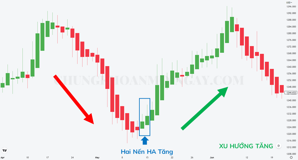 Là mô hình gồm 2 nến Heiken Ashi (HA) đảo chiều xu hướng. Mô hình xuất hiện sau một xu hướng giảm giá mạnh.
