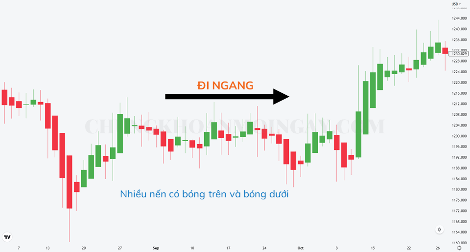 Xu hướng thị trường lúc này thường không rõ ràng được thể hiện ví dụ biểu đồ thực tế bên dưới đây.