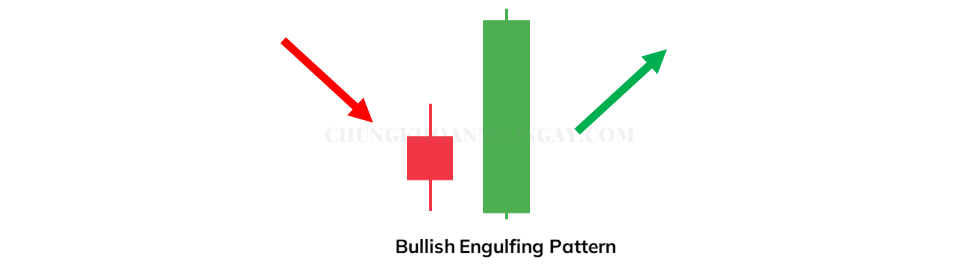 Mô hình nến “bao trùm” hoàn toàn cây nến giảm trước. Điều này có nghĩa là bên Mua đã thắng thế và một đợt tăng giá có thể xảy ra.