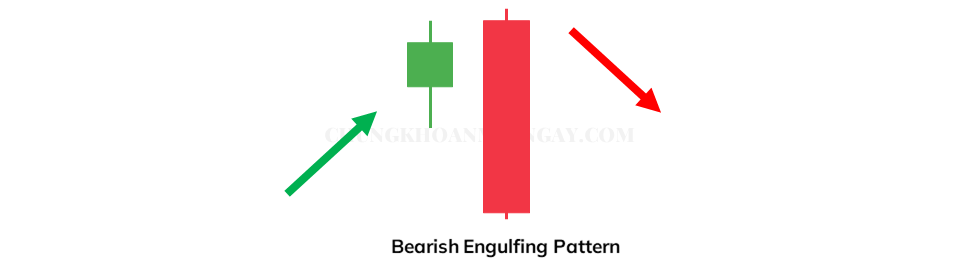 Cây nến giảm xuất hiện sau “nhấn chìm” hoàn toàn cây nến tăng phía trước. Điều này có nghĩa là bên Bán đã quyết định đẩy giá xuống mạnh sau một giai đoạn tăng giá hoặc đi ngang (sideway).